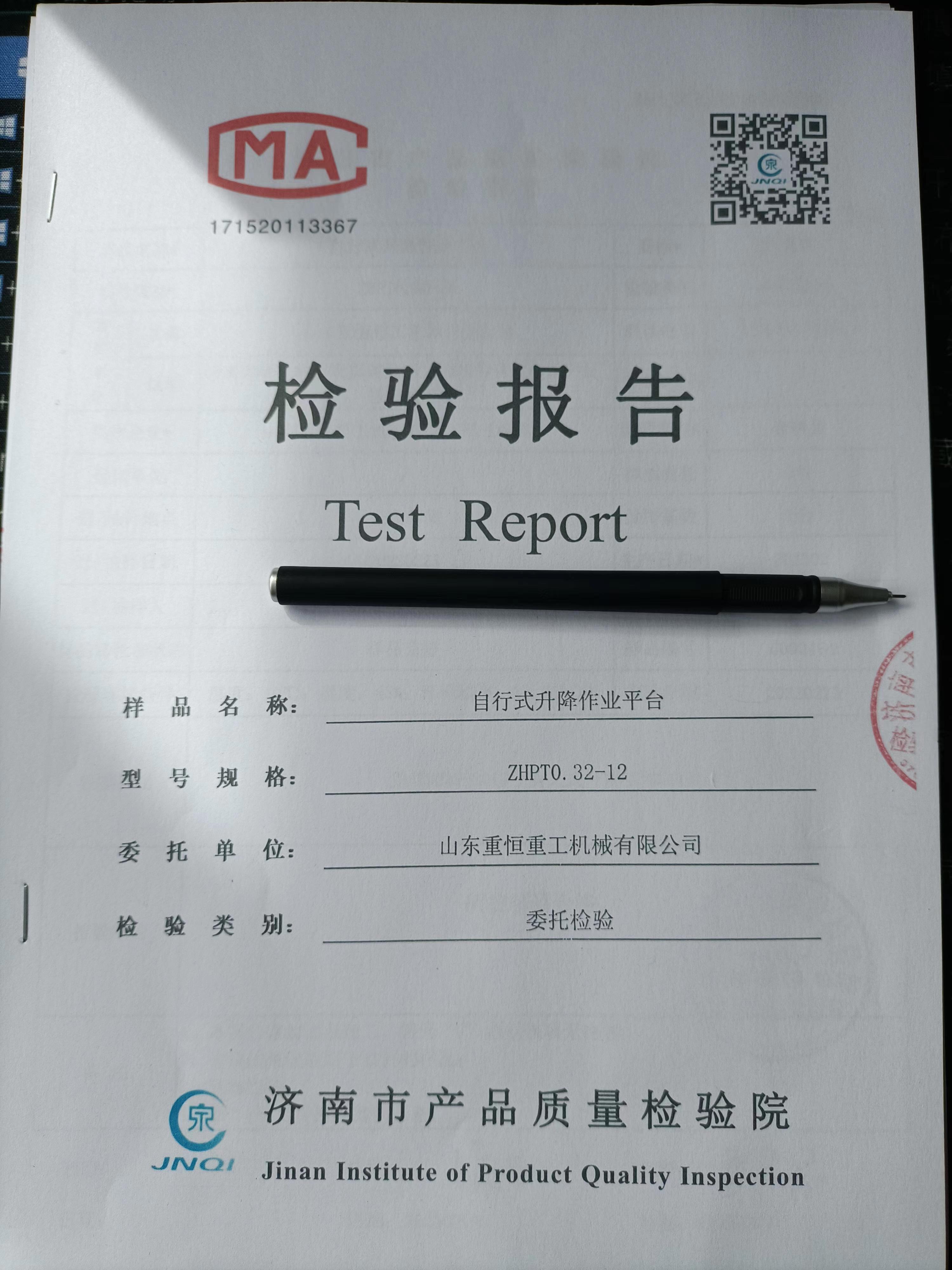 自行式剪叉式升降作業(yè)平臺(tái)屬于高空作業(yè)設(shè)備,出售設(shè)備的公司首先要具備官方檢測(cè)機(jī)構(gòu)出具設(shè)備的檢驗(yàn)合格報(bào)告, 要對(duì)于設(shè)備的型號(hào)、規(guī)格、檢驗(yàn)類(lèi)別、進(jìn)行檢驗(yàn)。 委托單位于當(dāng)?shù)氐漠a(chǎn)品質(zhì)量檢驗(yàn)院...